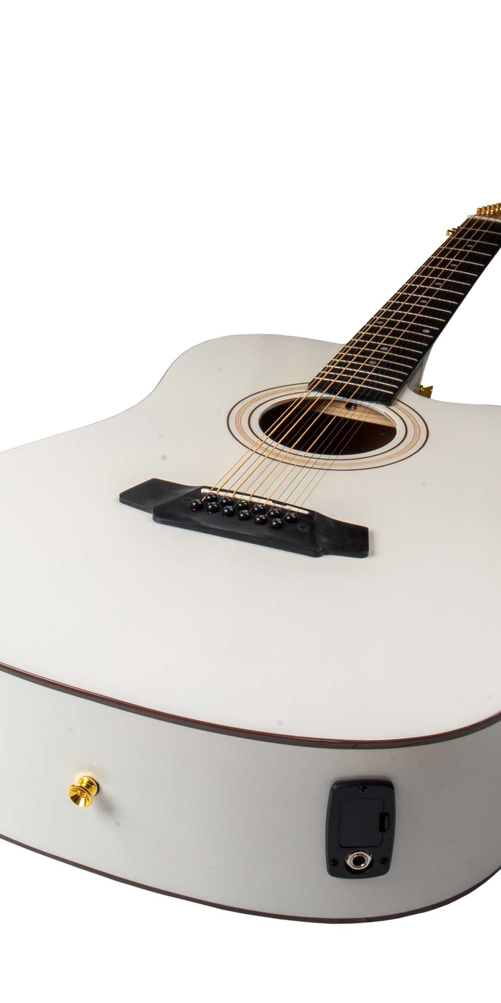 • Clavijeros dorados blindados que aseguran una afinación precisa y estabilidad frente a la tensión de 12 cuerdas.