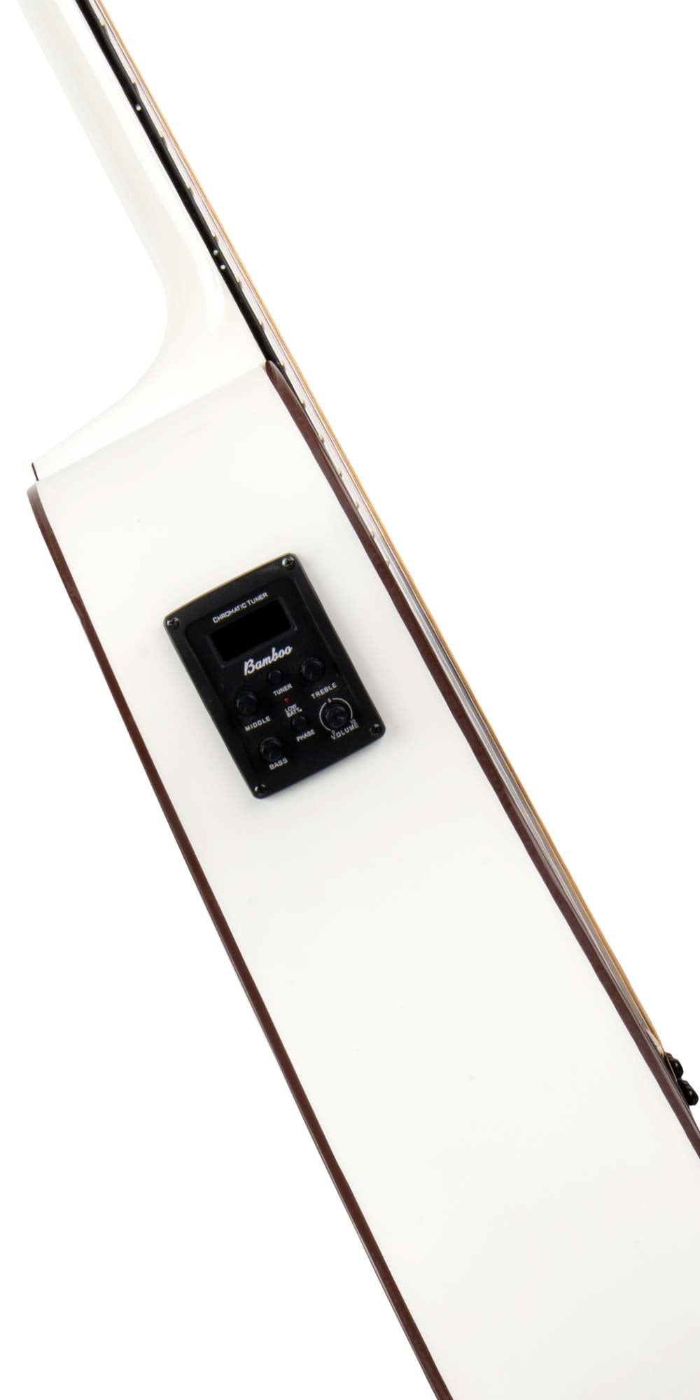 • Incluye sistema de ecualizador Bamboo de 3 bandas con afinador cromático incorporado y entrada jack, para controlar bajos, medios y agudos. Funciona con batería.