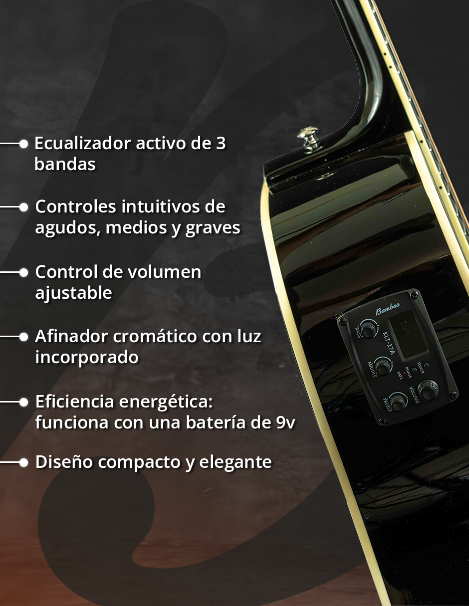 ✅ Equalizador/Pastilla: Bamboo con 3 bandas y Afinador cromático incorporado.