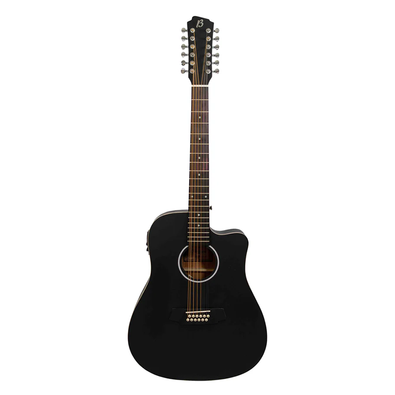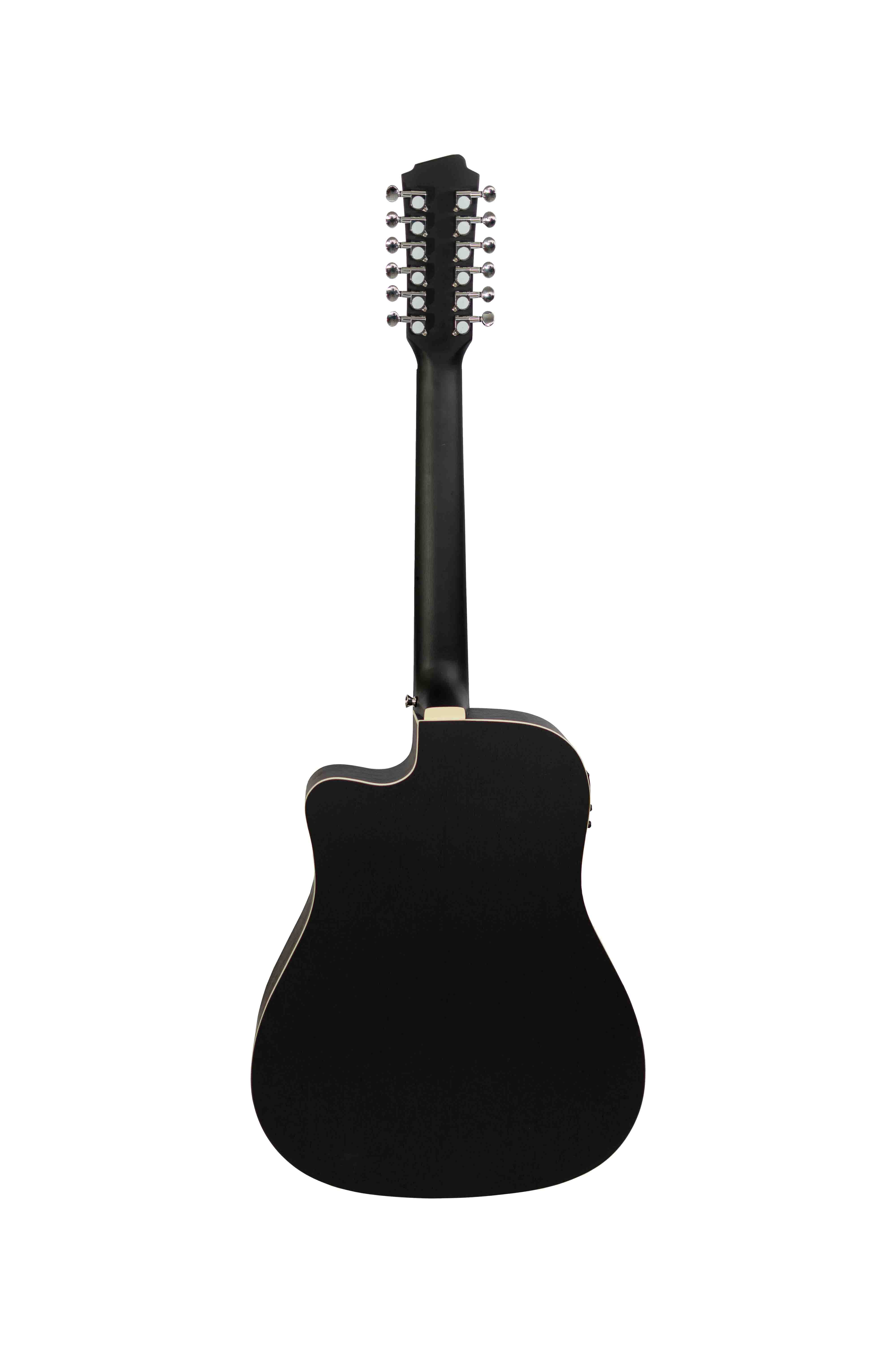 • Guitarra electroacústica de 12 cuerdas (Docerola) tamaño 42", ideal para música norteña, corridos y estilos que requieren un sonido con cuerpo y armónicos.