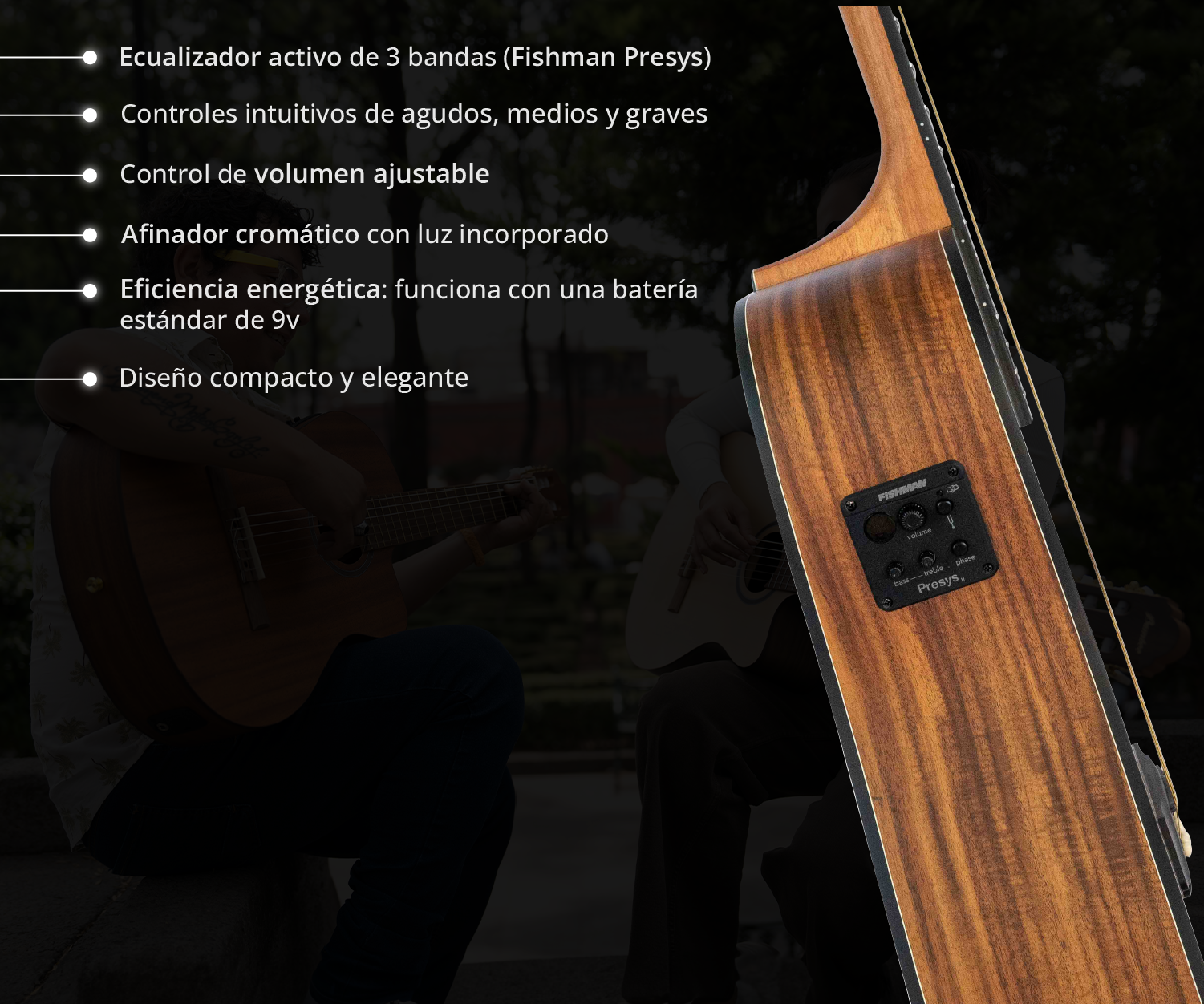 ✅ Equalizador/Pastilla: Fishman con 2 bandas y Afinador cromático incorporado.