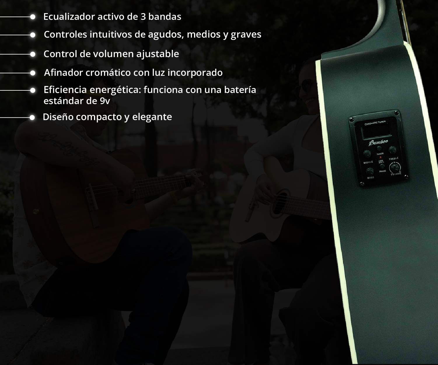 ✅ Equalizador/Pastilla: Bamboo con 3 bandas y Afinador cromático incorporado.