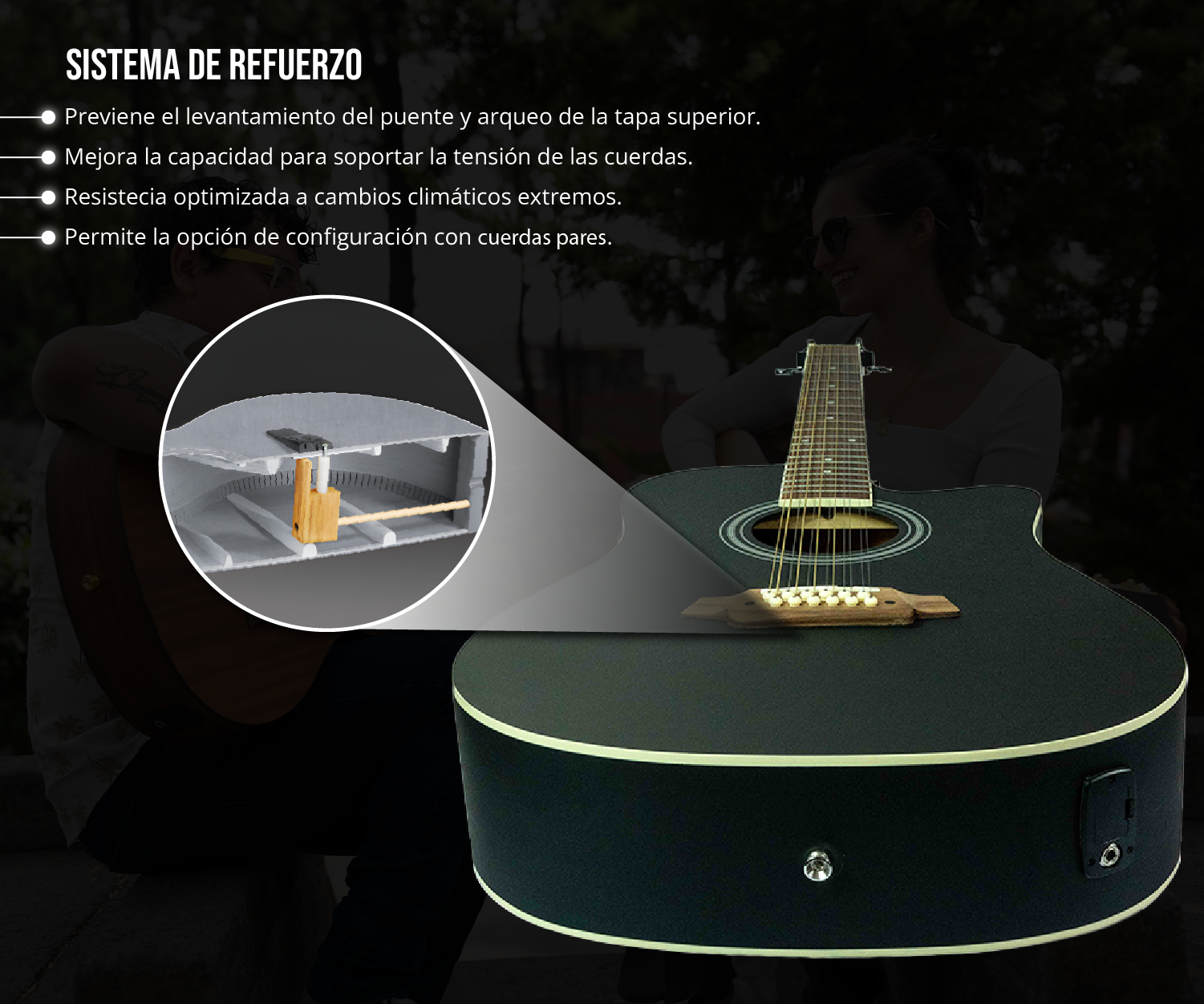 • Construida para resistir cuerdas pares, gracias a su refuerzo estructural interno y puente preparado para la tensión adicional.