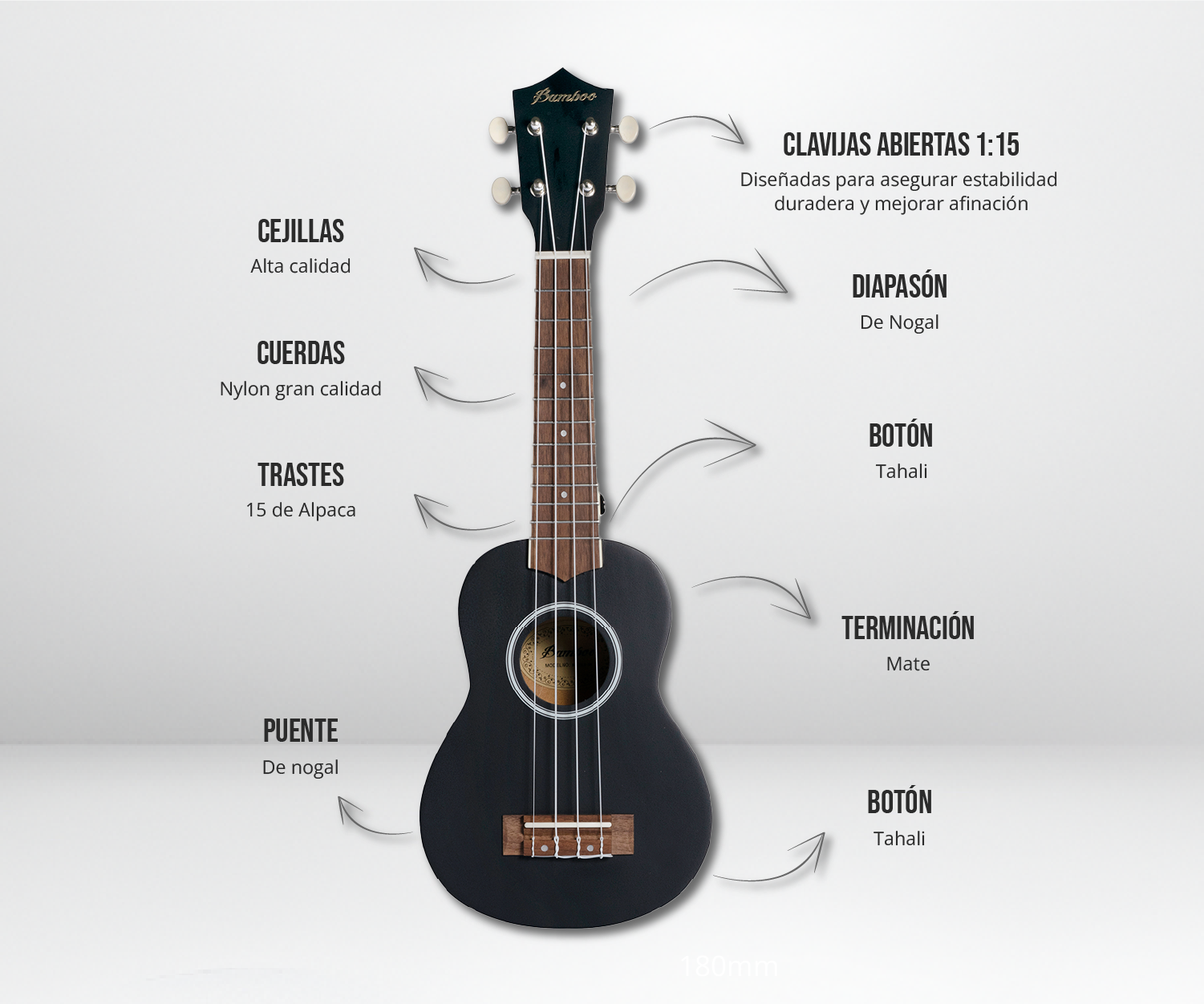 Ukelele Soprano Estudio Negro - Incluye Funda