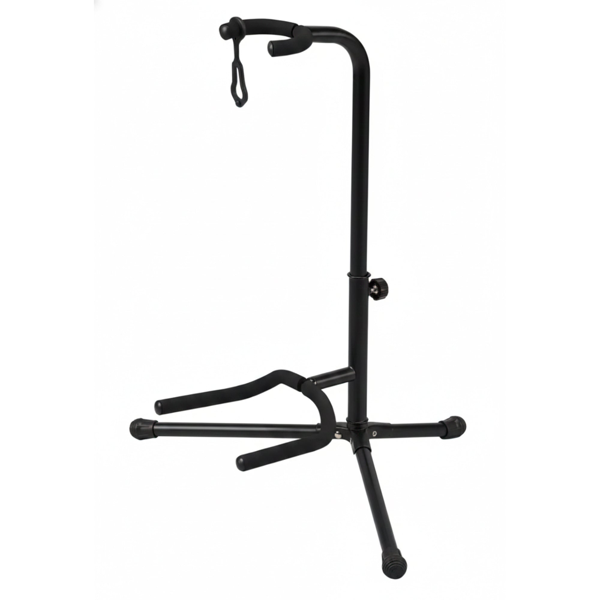 Altura ajustable: Incluye una perilla central que permite regular la altura del mástil, adaptándose a diferentes tamaños de guitarras acústicas, eléctricas o bajos.
