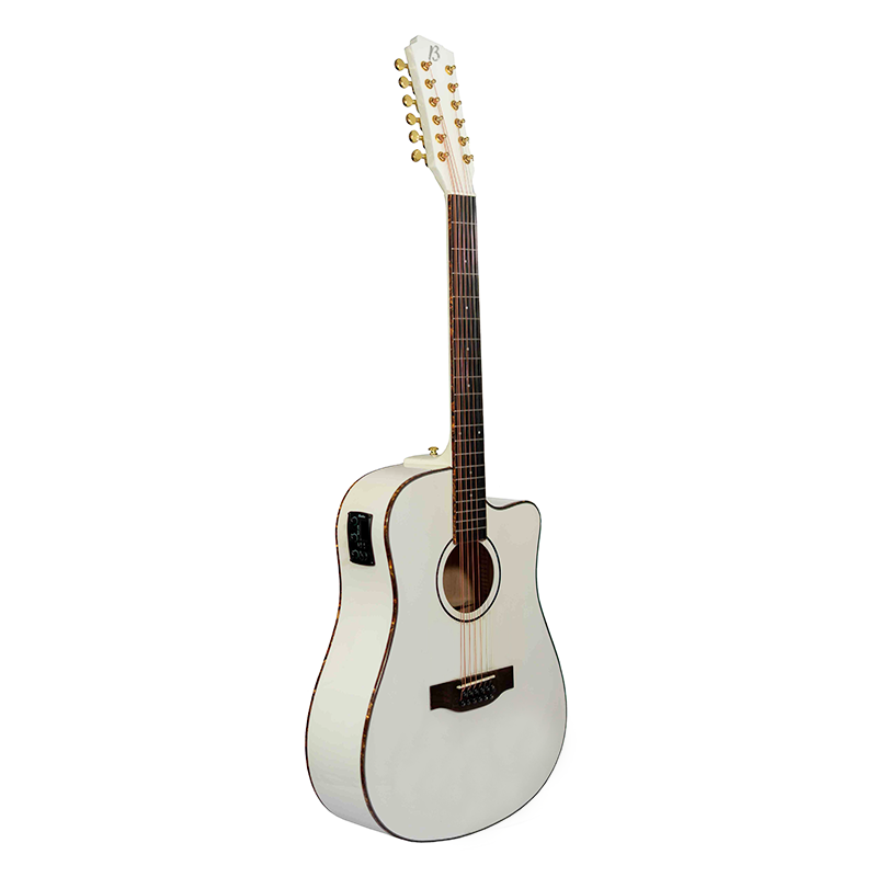 • Guitarra electroacústica de 12 cuerdas (Docerola) tamaño 42", ideal para música norteña, corridos y estilos que requieren un sonido con cuerpo y armónicos.