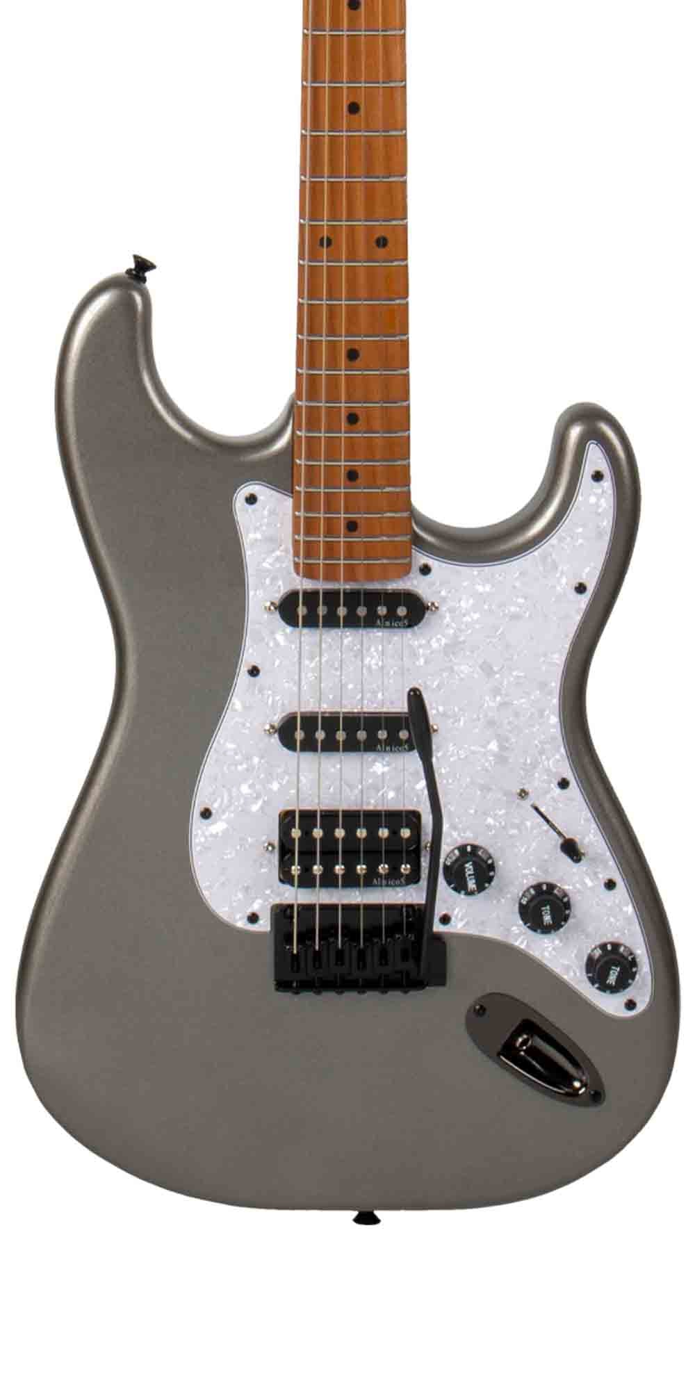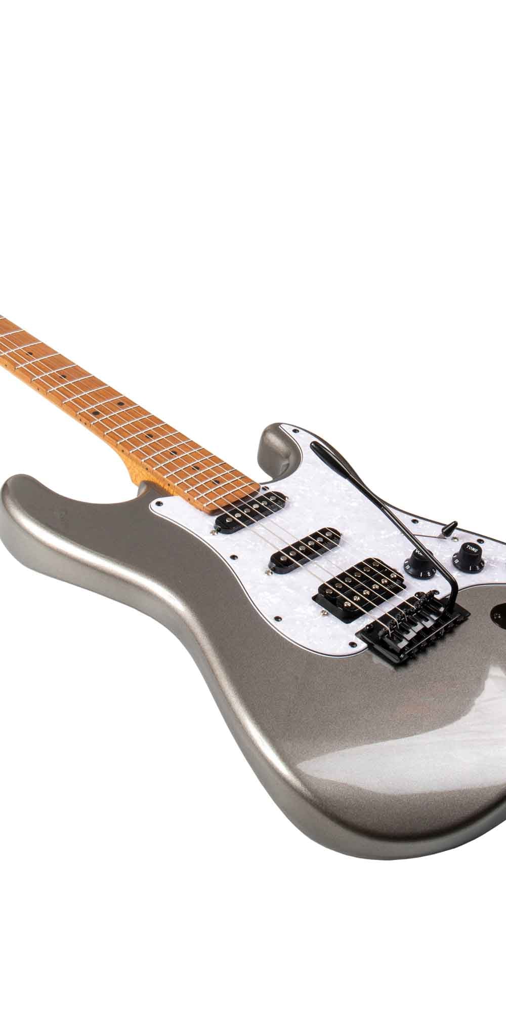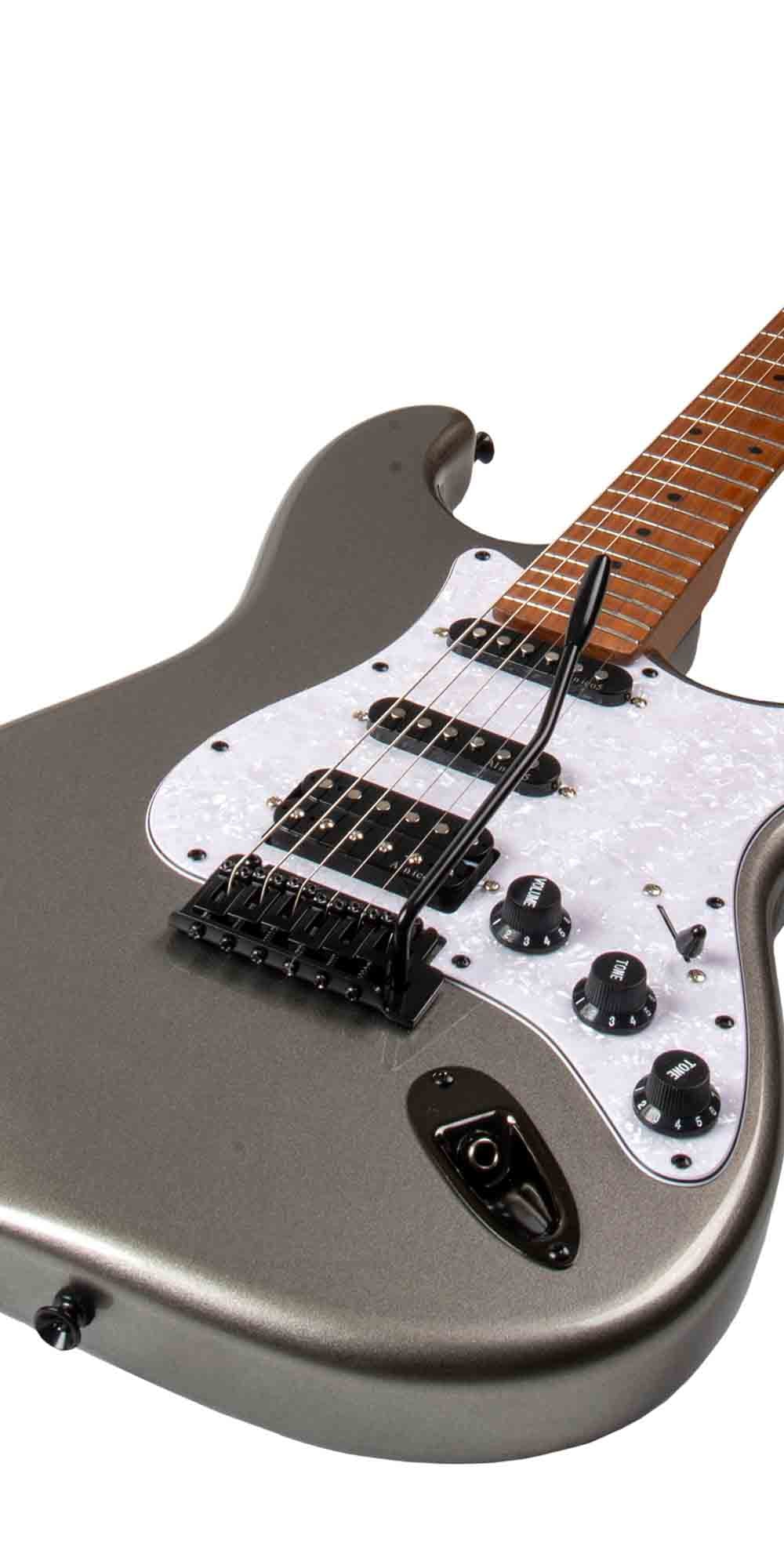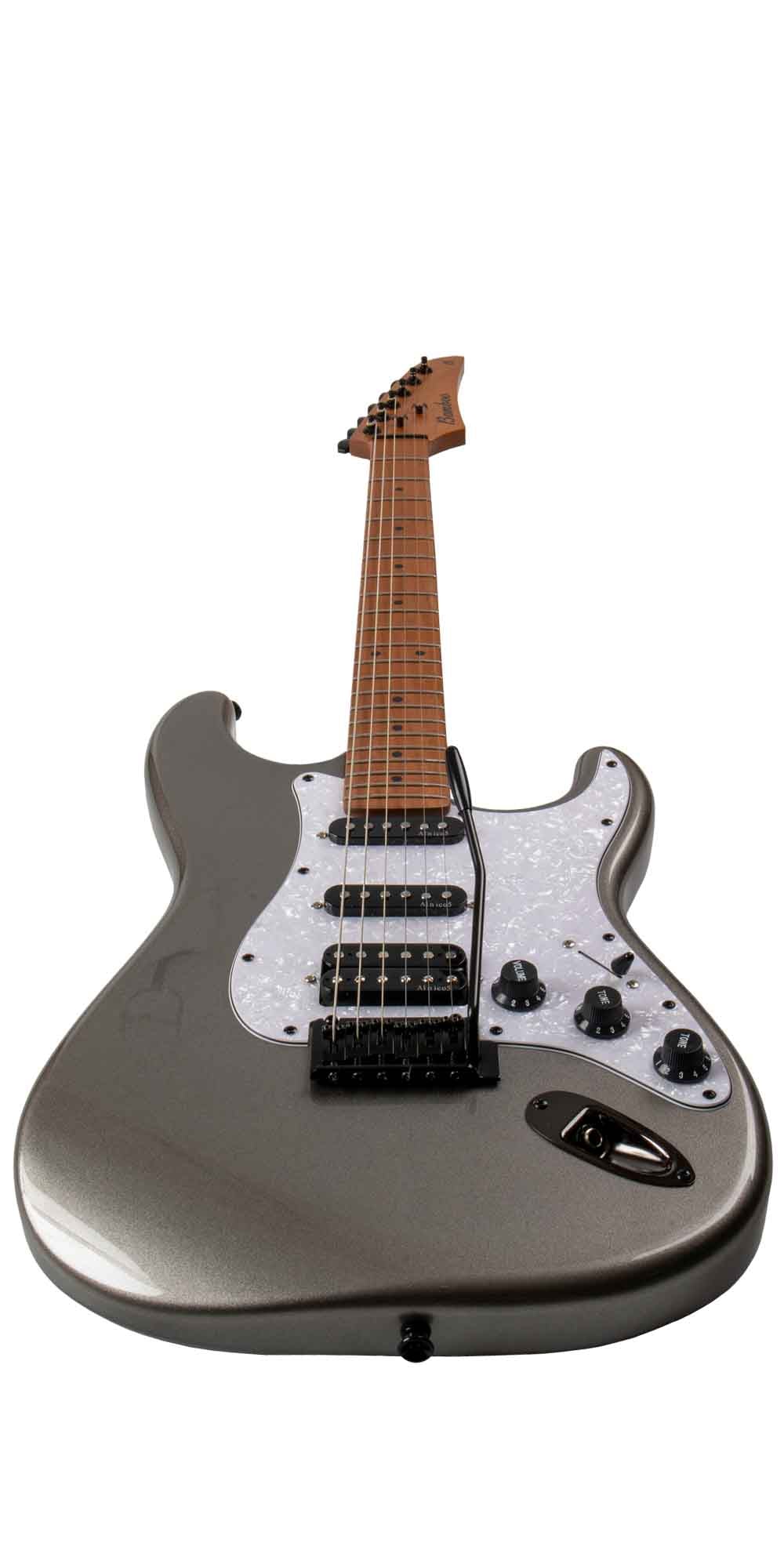 La serie SOLAR SSH lleva el clásico formato Stratocaster a otro nivel. Incorpora un puente moderno de 2 pivotes para mayor estabilidad, un micrófono doble Alnico en el puente para un sonido más potente y accesorios en negro que le dan un look único y diferente a otras marcas. Disponible en colores negro, sunburst, rosa y gris, es ideal para quienes buscan un instrumento versátil y con personalidad.