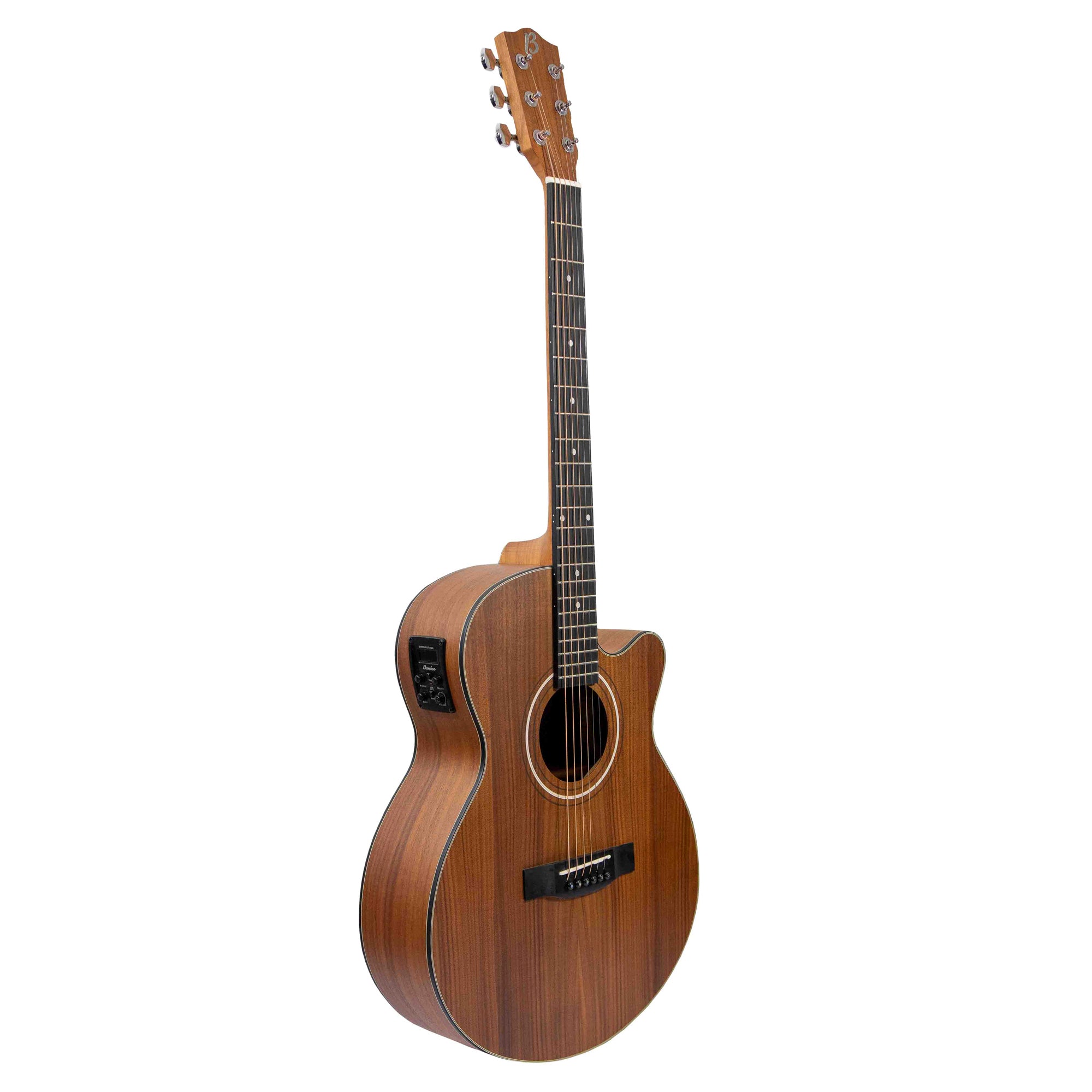 Ecualizador Bamboo de 3 bandas, control de volumen y afinador cromático.