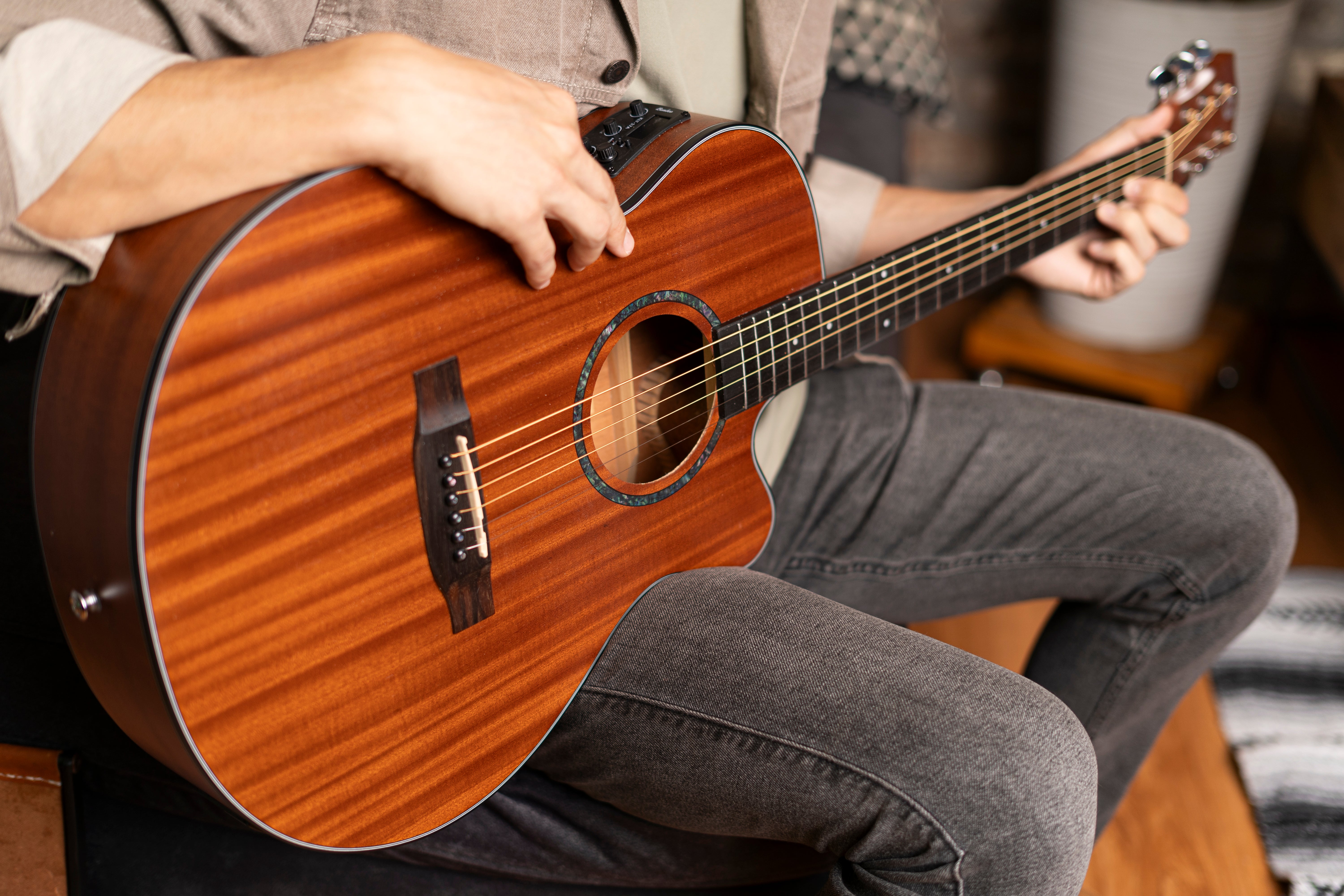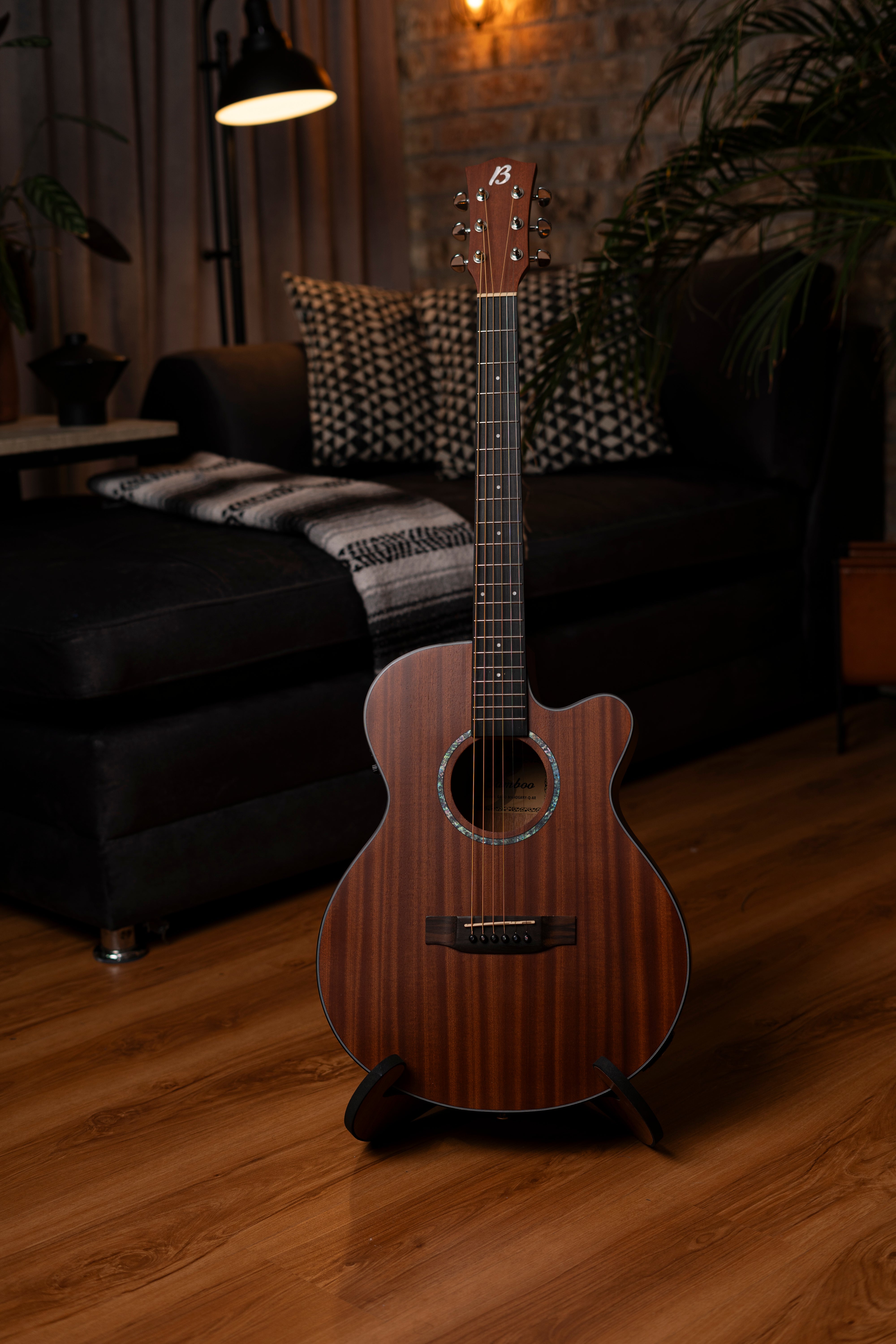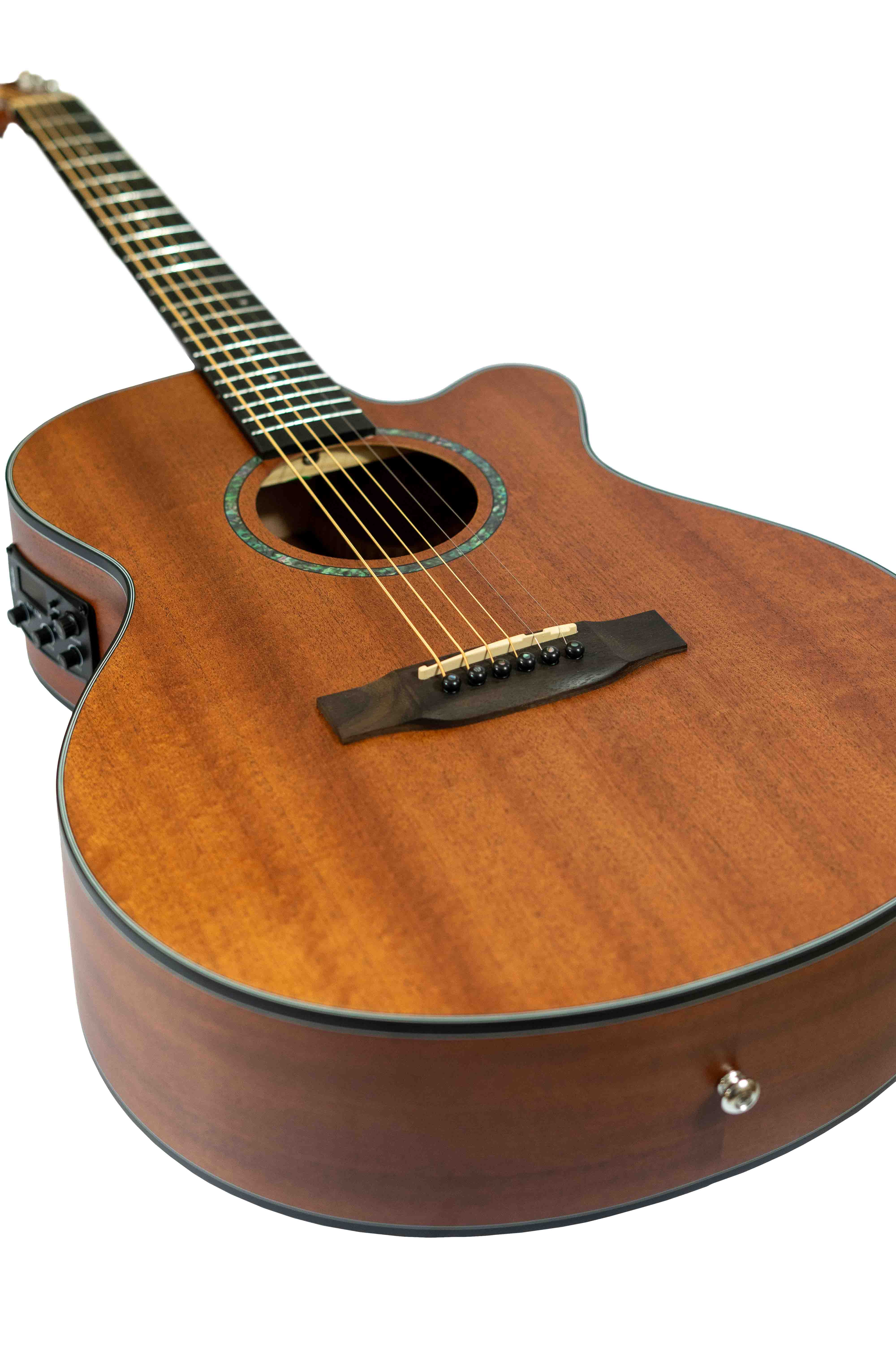 • Diseño con corte (cutaway) que facilita el acceso a los trastes más bajos, ideal para solos o melodías más complejas.