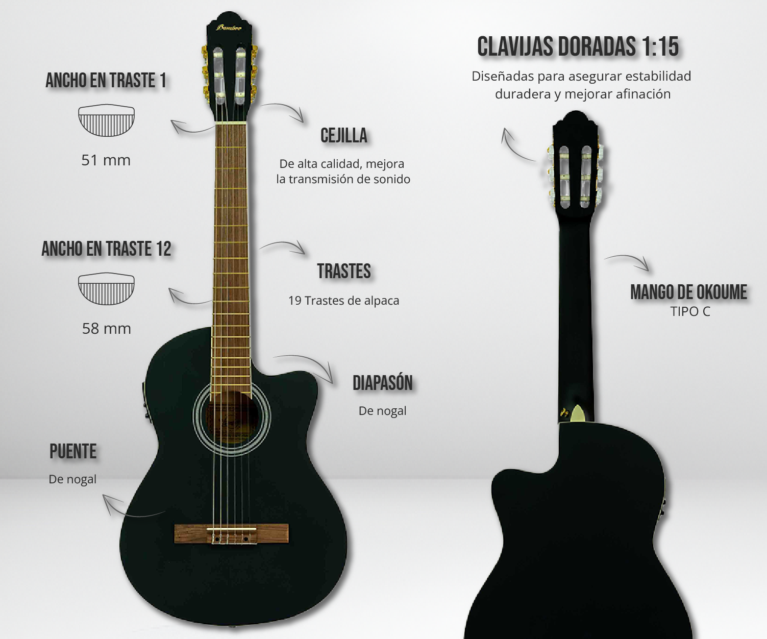 Cada nota es rica, resonante y llena de matices. Estas guitarras ofrecen una proyección impresionante y una respuesta excepcional, permitiendo a los músicos expresarse con claridad y profundidad.