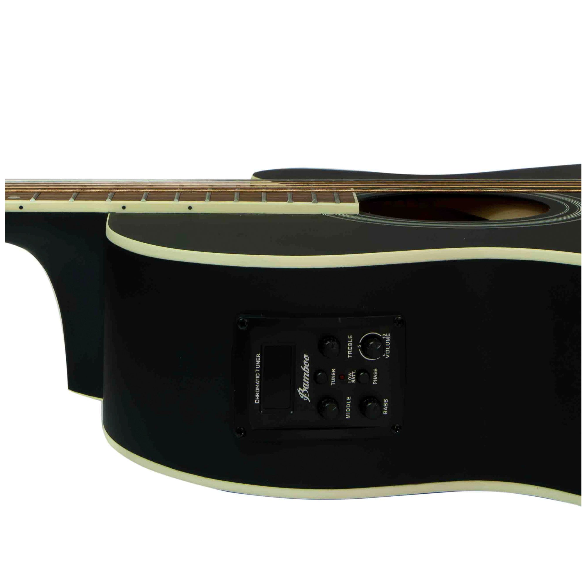 Ecualizador Bamboo de 3 bandas, control de volumen y afinador cromatico.