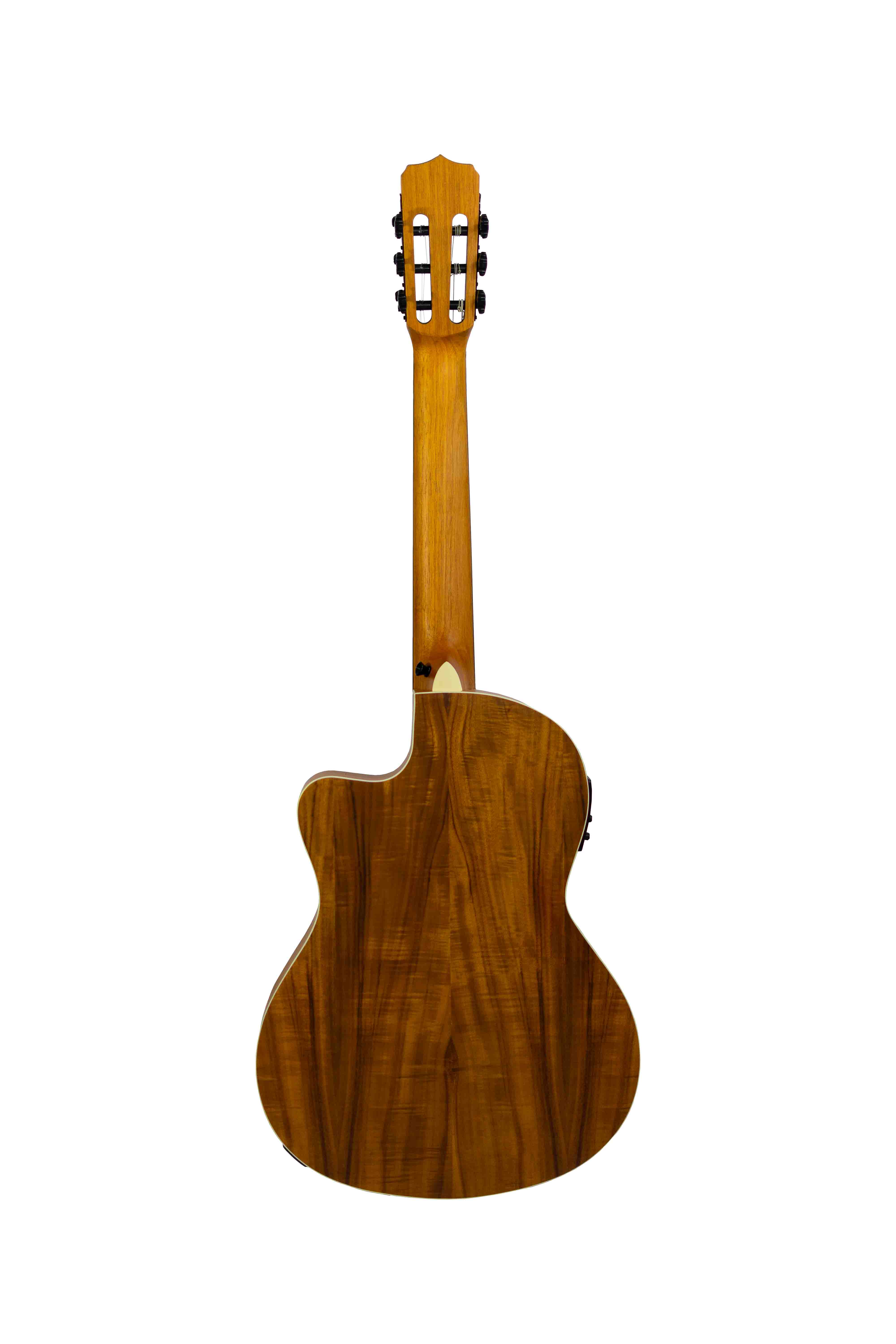 Construida en madera de koa y con cuerpo slim (más delgado que lo habitual), ofrece un sonido limpio y equilibrado, ideal para tocar en vivo, grabar o practicar con comodidad. Su peso liviano y tamaño compacto la convierten en una compañera de viaje perfecta.