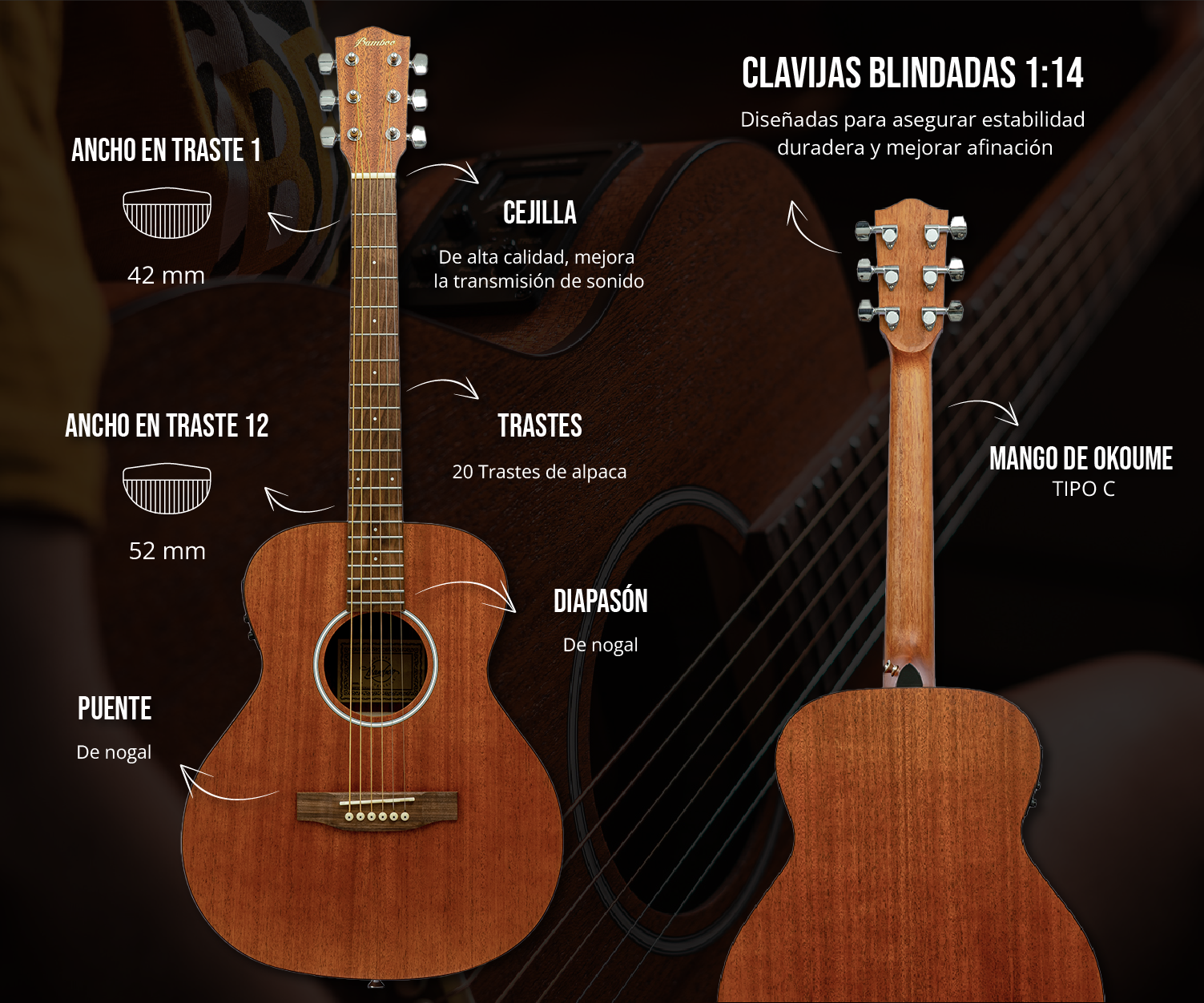 Su resonancia excepcional y su capacidad para resaltar los tonos medios y graves hacen que estas guitarras sean ideales para cualquier estilo musical. Con las propiedades acústicas de la madera Mahogany, nuestras guitarras te permitirán expresarte con pasión y transmitir emociones a través de su sonido distintivo.
